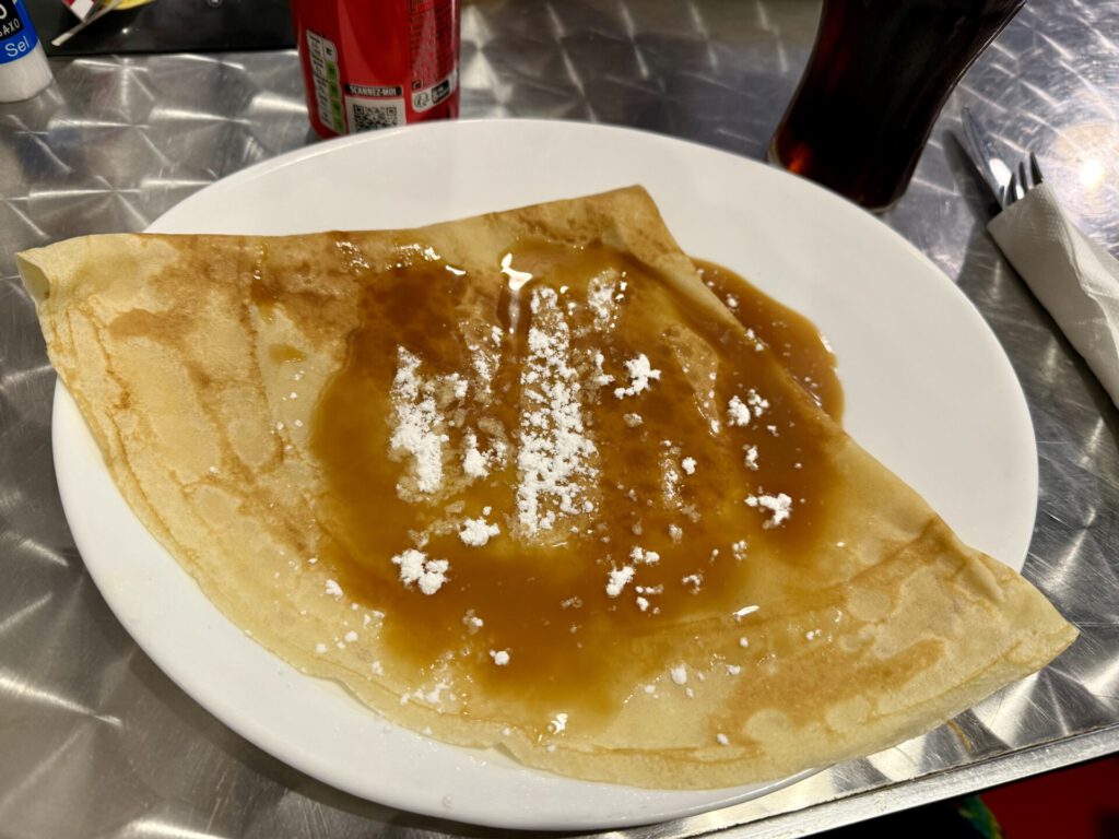 Wir entschlossen uns für „drinnen“…Crepes mit Karamell und Salzbutter….ein normannisches Exemplar.