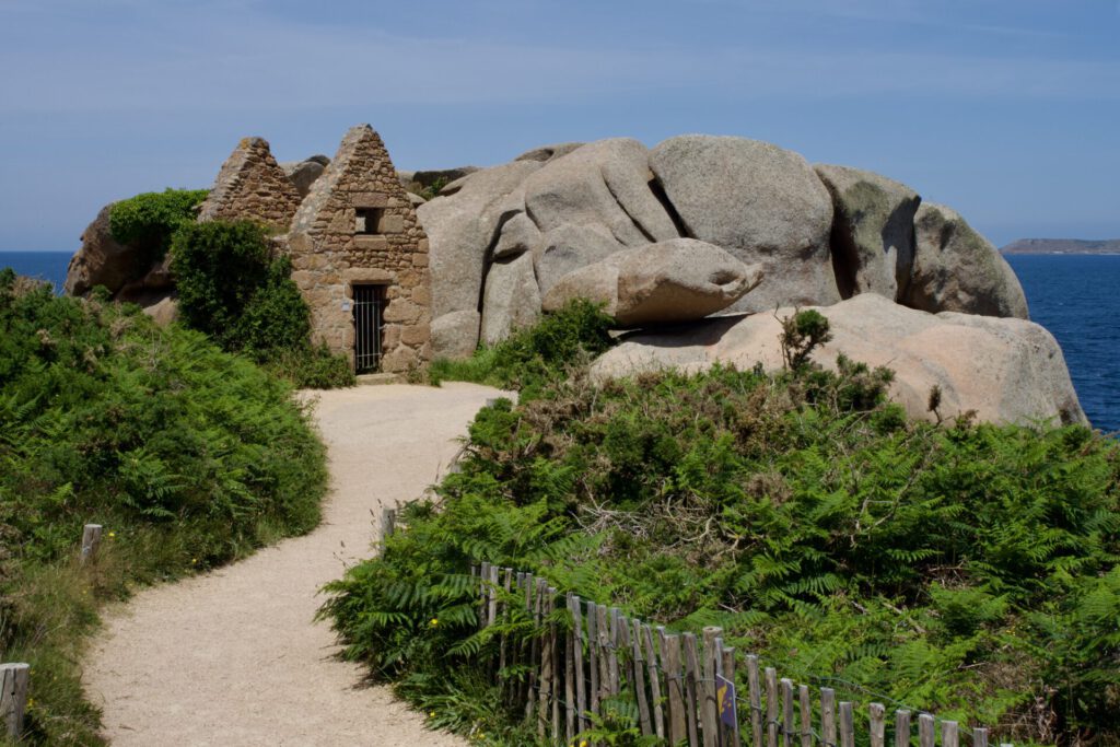 Weiterhin ist die Gegend für seine sensationelle Küste, Le Gouffre und Castel Meur, einem der am Meisten fotografierten Motive in der Bretagne bekannt. Castel Meur ziert allerdings kein offizielles Werbeprodukt für die Bretagne mehr, das „Haus zwischen den Felsen“ darf ohne Autos vor dem Haus nicht mal mehr abgebildet werden. Die Besitzer des pittoresken Cottages sind per Gerichtsbeschluss,wohl ziemlich reich geworden. Die Rechte am Bild wurden zunächst verkauft, sind seit 2023 wieder im Familienbesitz und jede Zuwiderhandlung wird teuer…… Warum die Eigentümer so drauf sind, kann man nur mutmaßen, Die Hutte liegt am Wasser, ein Blick auf das Schmuckstück gelingt nur aus 50m Entfernung, Privatsphäre ist in keinem Fall beschädigt…..Andere wären stolz und hätten noch Blumen vor das Haus gepflanzt. Die hier gezeigten Fotos sind alle nen bissel mit dem „magischen Radierer“ bearbeitet, da bei unserem Besuch nicht nur zwei PKWs sondern auch noch ein LKW sein Unwesen trieb. Da leider auch Privatpersonen hops genommen werden….ein Auto bleibt also vor der Hütte.