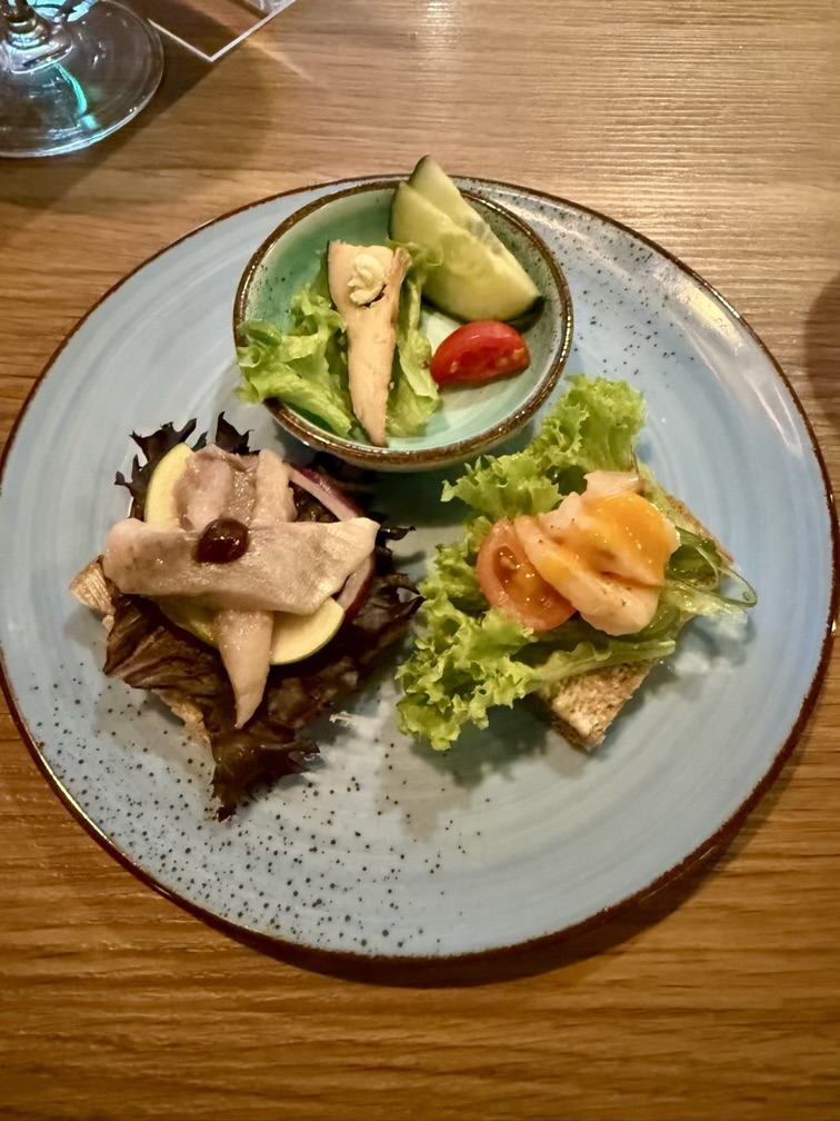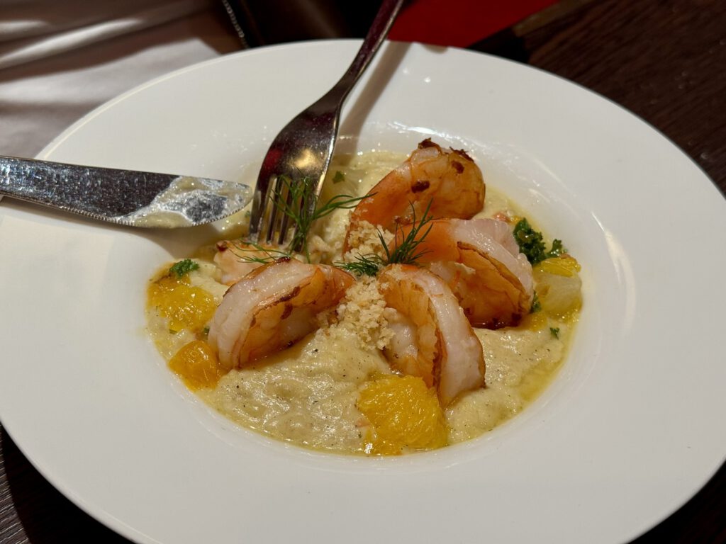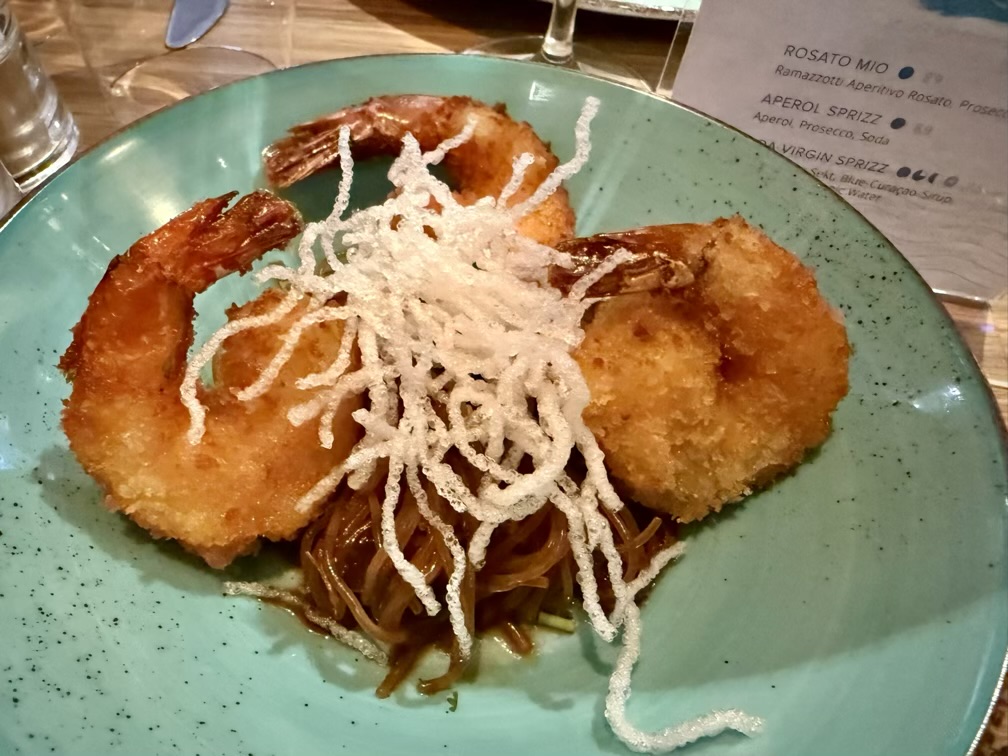 Wir hatten für alle Tage an Bord eine Restaurantreservierung und bereits am ersten Abend verwöhnte uns das Oceans….keine Angst, die Teller zeigen eine Auswahl von vier Fressern, zuviel war es aber alle Male