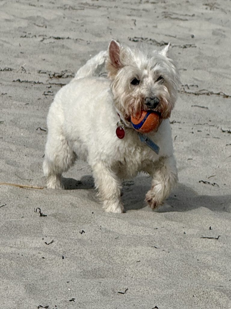 Wir fuhren gegen 8:00 Uhr los, der kleine dreckigweiße Wauzebär war so aufgeregt, sie konnte es kaum erwarten. Emily liebt Urlaub und reisen und ist ein lieber kleiner Teddy im Kennel, so lange das Auto fährt.