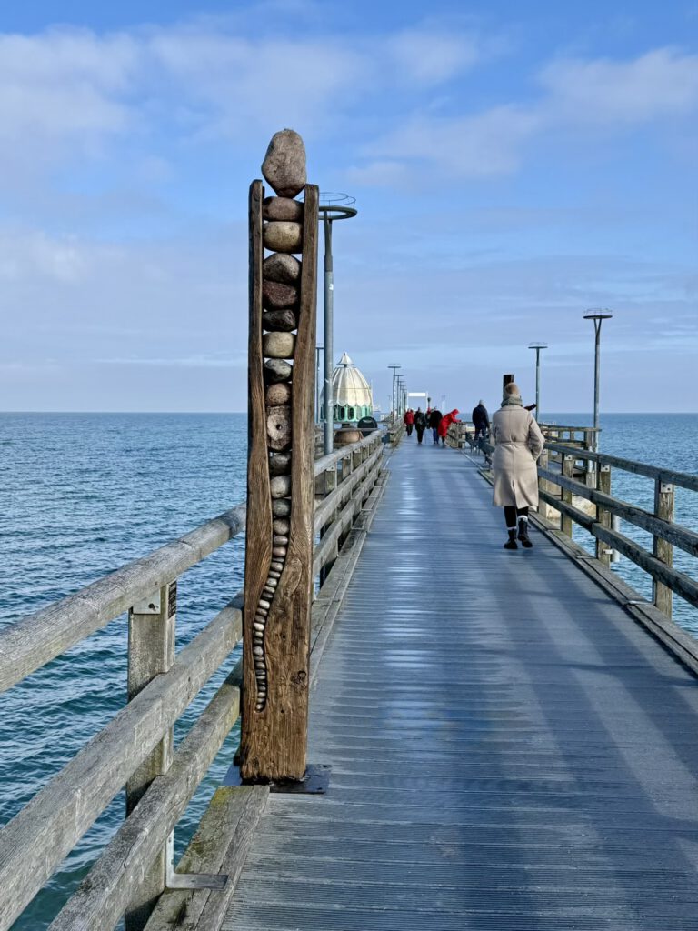 Wir liefen nochmal an den Strand, Mama und ich die Seebrücke bis zur Taucherglocke, die Männer ließen Drechen steigen, mit maximalem Erfolg.