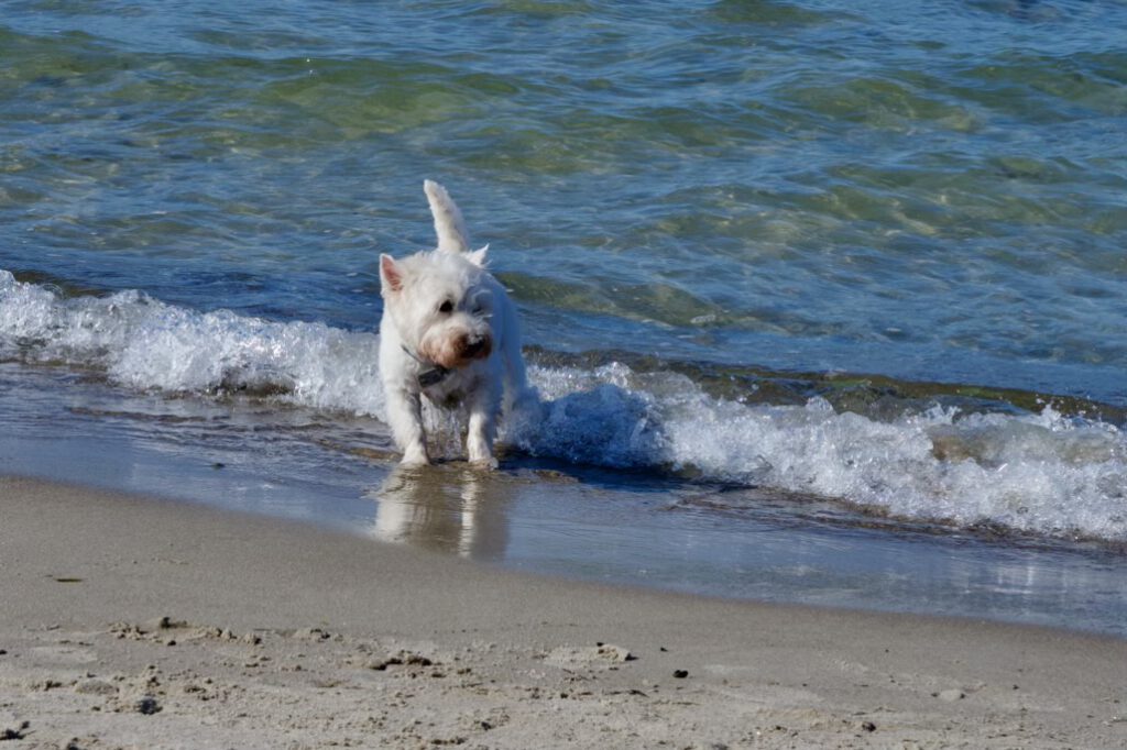 Mit einem glücklichen Hund, am Strand von Warnemünde, beende ich diesen kleinen Bericht.