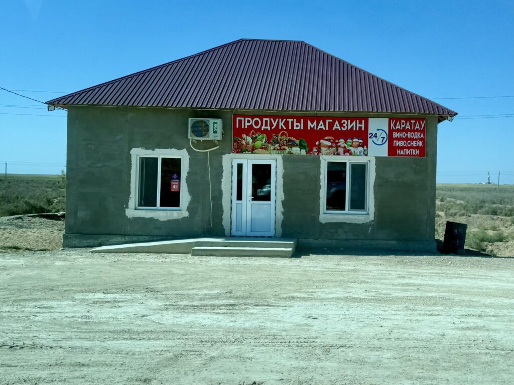 Wenn man sich Moynak nähert, fallen einem die Gasbohrungen wieder ins Auge sowie die kleinen gesichtslose Siedlungen, die sich IM SEE angesiedelt haben…auf eine gute Gesundheit!