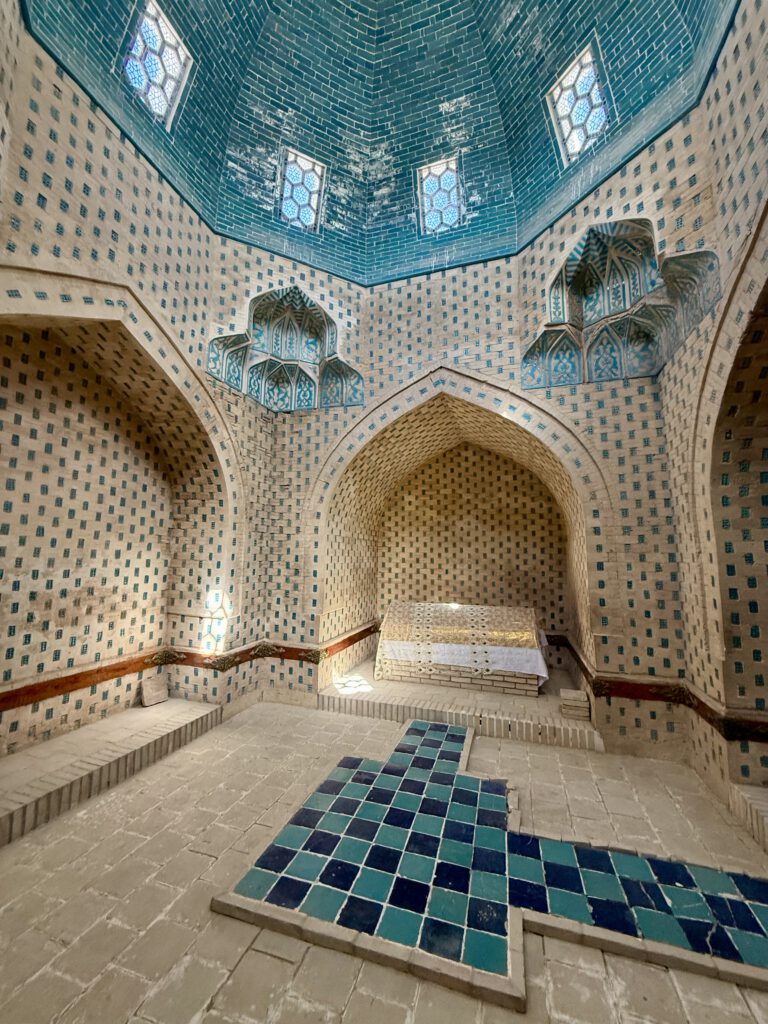 Der Friedhof ist riesig und wird immer noch genutzt, ein paar Mausoleen sind auch im Inneren sehenswert, so wie das von Shabun Nabi. Mizadakhan ist einer der ältesten Friedhöfe in Zentralasien und wirklich gewaltig. Leider krochen wir zur Mittagszeit über das Gelände, was nicht wirklich empfehlenswert ist.
