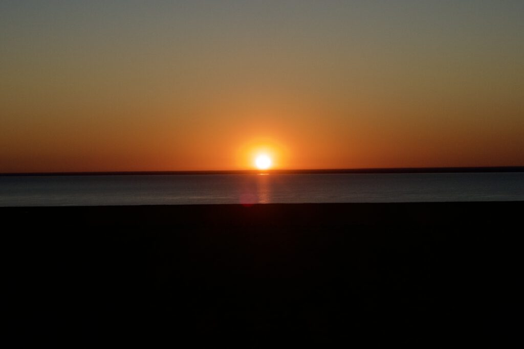 Der Sonnenaufgang war für 6:45 Uhr angekündigt, beißende Kälte begleitete uns beim Anblick des erwachenden, sterbenden „Meeres“….wunderschön, trotz Katastrophe.