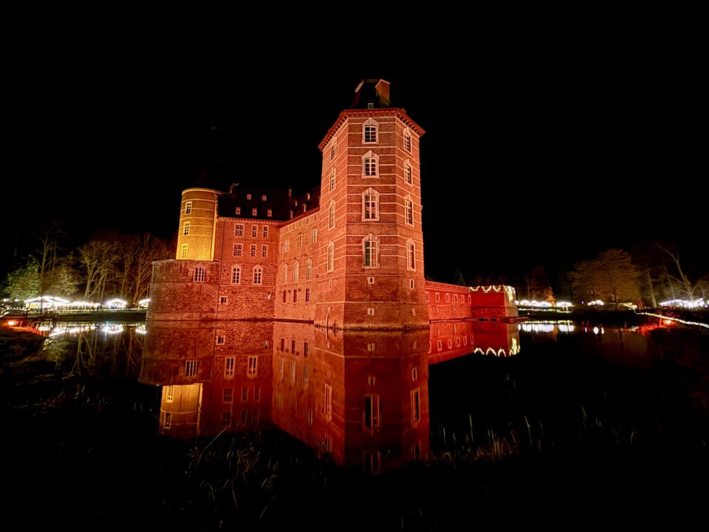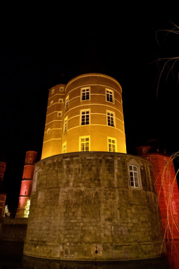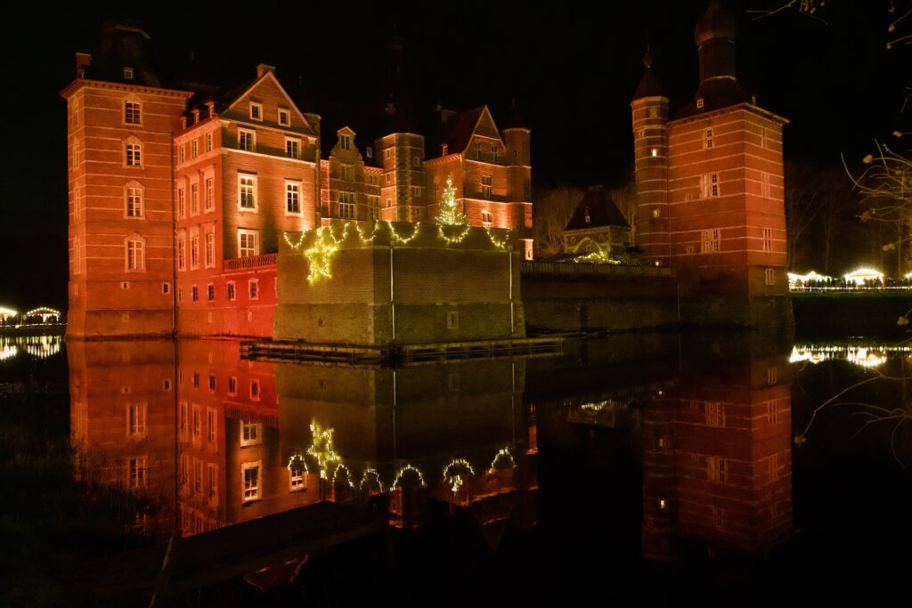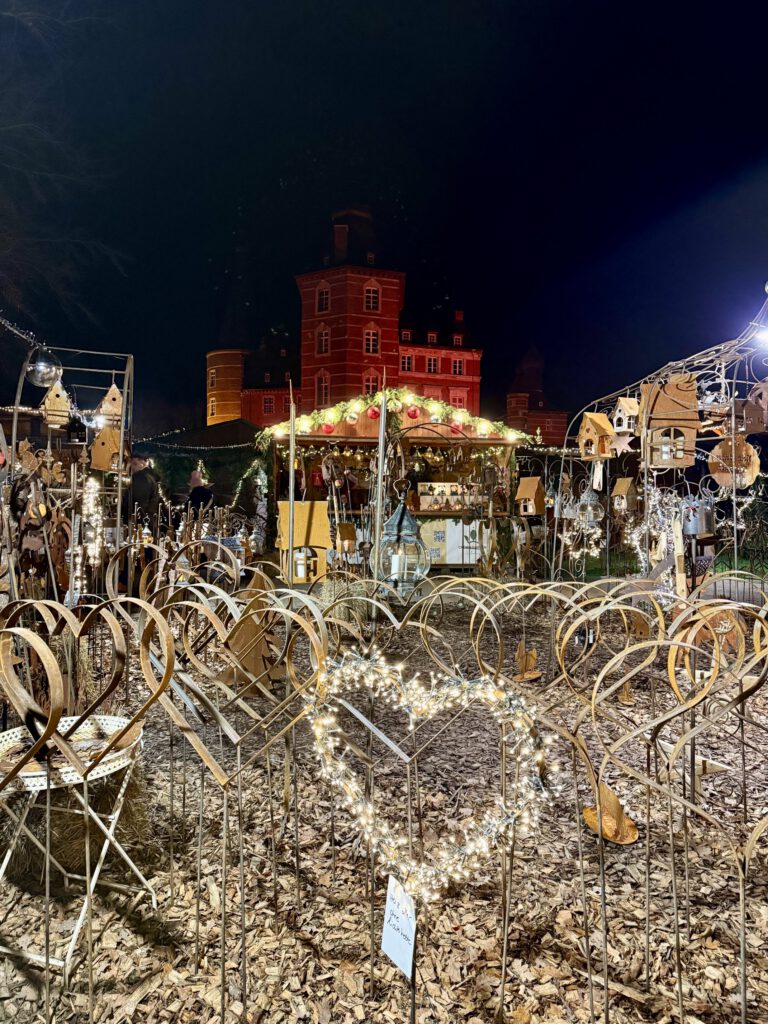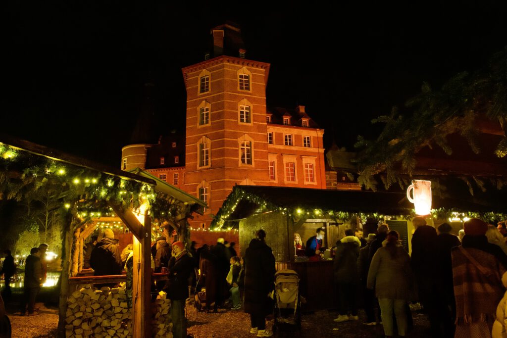 Charles- Louis von Merode und seine Familie wohnen nun also in einem der schönsten Wasserschlösser der Renaissance ( erbaut im 12. Jh.) und wir waren ganz verzaubert. Aufgrund des Eintritts 11,50€ ( Parken für umme) zieht das Schloss natürlich weniger Laufvolk an, hier fährt man gezielt und für die Atmosphäre hin. Merode wurde zum gemütlichsten Weihnachtsmarkt Deutschlands gekürt und ja, im Verlauf des Abends, als es leerer wurde, gingen wir mit dieser Aussage mit….