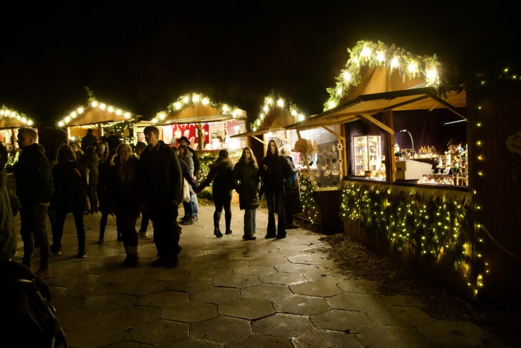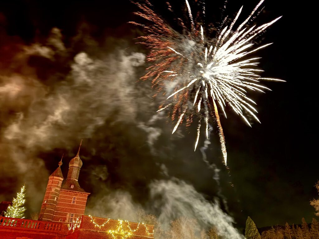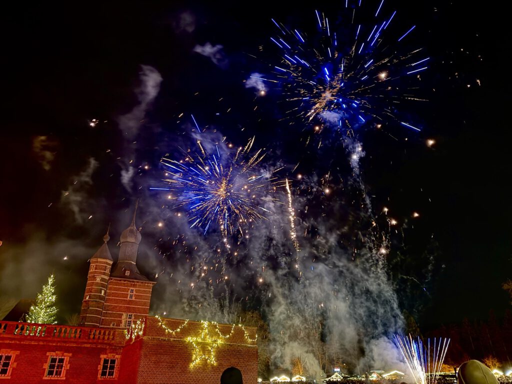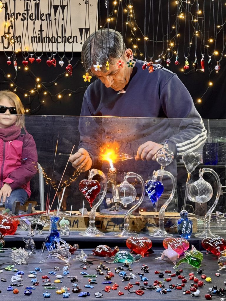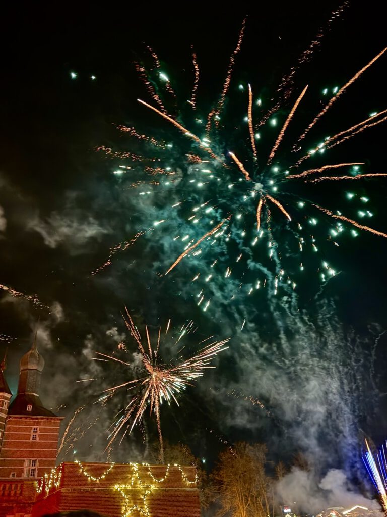 Die Buden sind um das Schloss herum platziert, so das man einfach mit, oder gegen dem Uhrzeigersinn laufen kann und quasi nichts verpasst. Als wir ankamen wurde bereits das Feuerwerk für 18:00 Uhr angekündigt. Vorher sollte mit „ Alle Jahre wieder…“ das Christuskind angelockt werden…ein großer Spaß für die Kleinen.