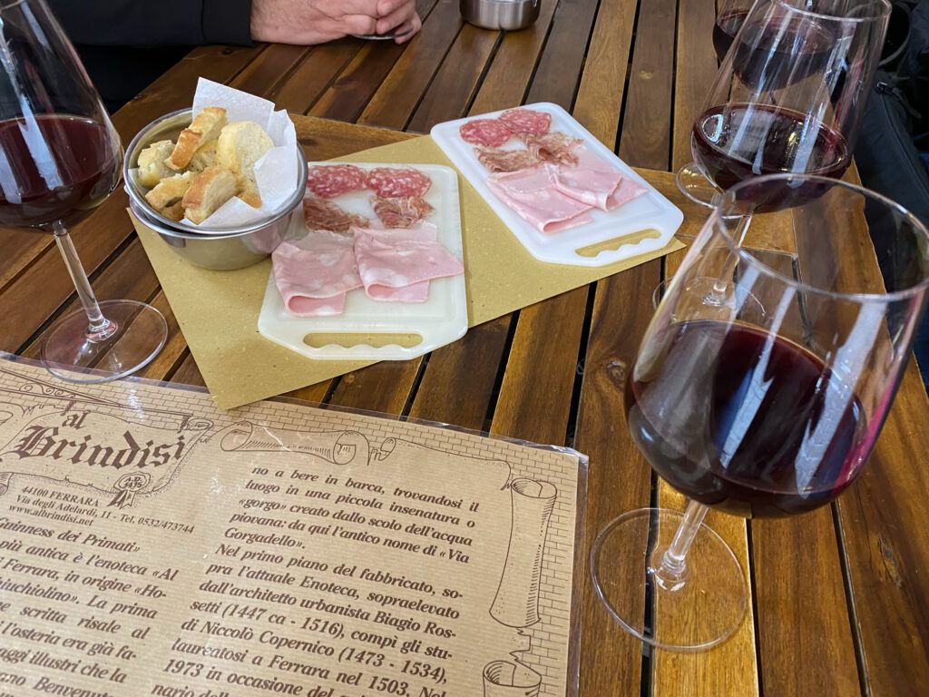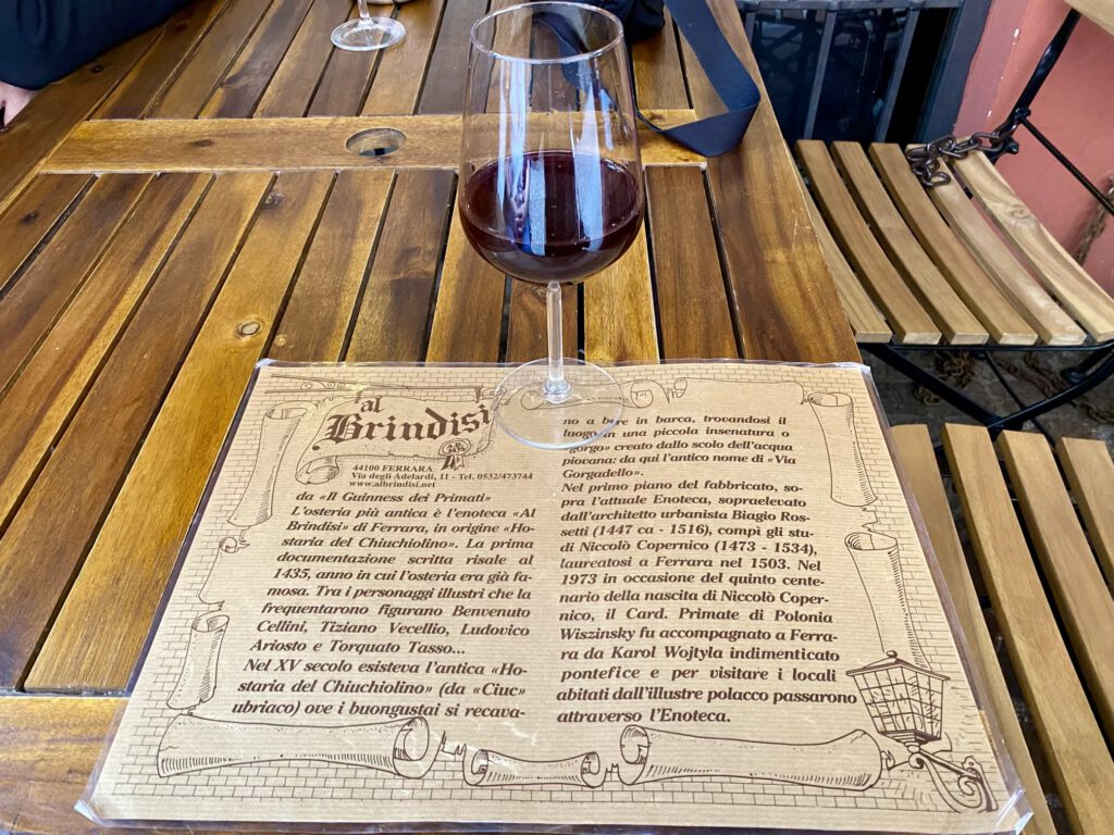 Im Al Brindisi genossen wir einen Vino und Apero….das Restaurant existiert seit 1435…..so geht Geschichte liebe Amerikaner.