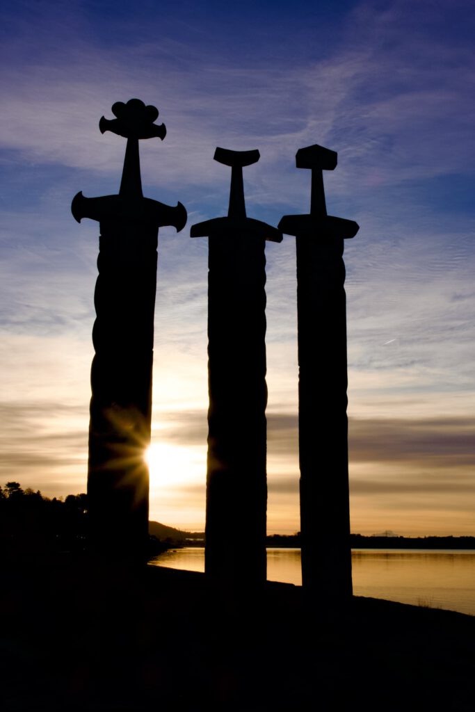 Schwerter im Berg ist ein Denkmal welches an die Schlacht am Hafrsfjord im Jahr 872 erinnert. Harald Schönhaar wurde erster König Norwegens, und ist ein Symbol für die damit erfolgte nationale Vereinigung Norwegens