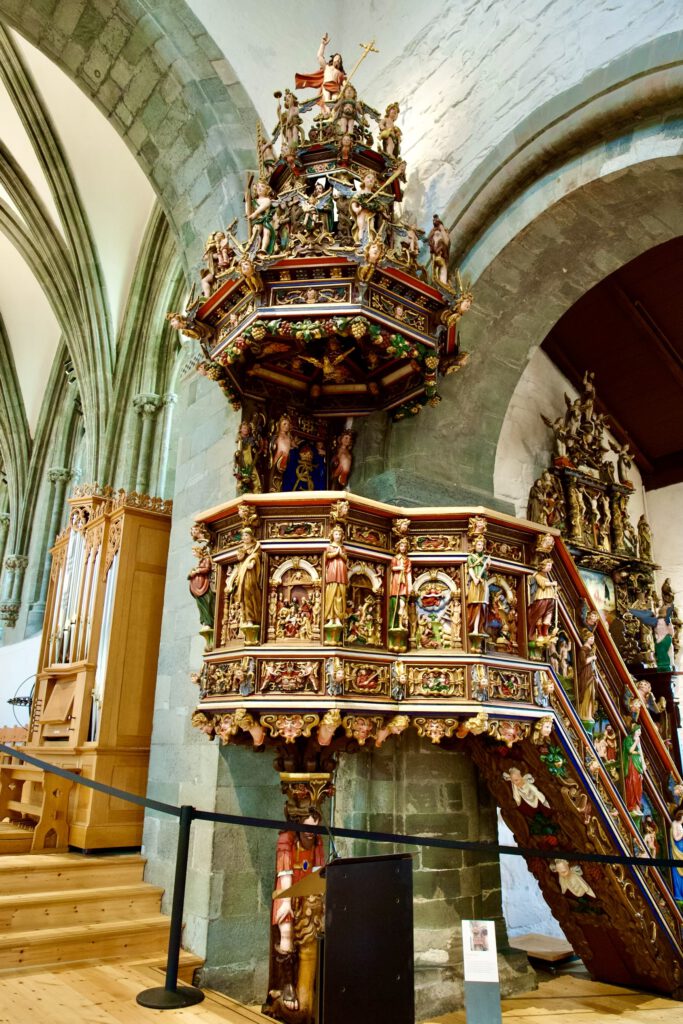 Der Dom zu Stavanger ist aus dem 11 Jh. und damit die älteste Bischofskirche Norwegens. Bemerkenswert waren die Kanzel und das wunderschöne Glasfenster.