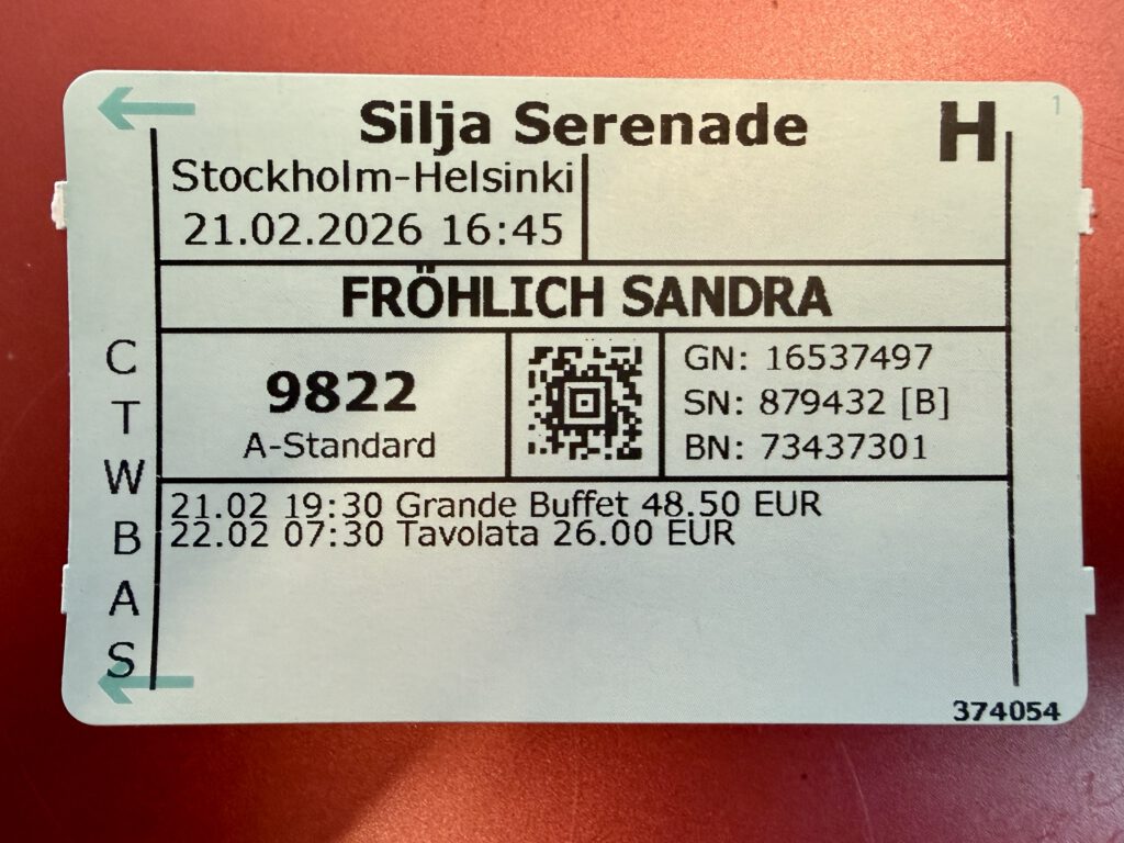 Die Silja Serenade ist zwar ein altes Schiff, kommt aber modernisiert und schick daher. Essen ( Grand Buffet und Frühstück beim Italiener) waren ihr Geld wert.
