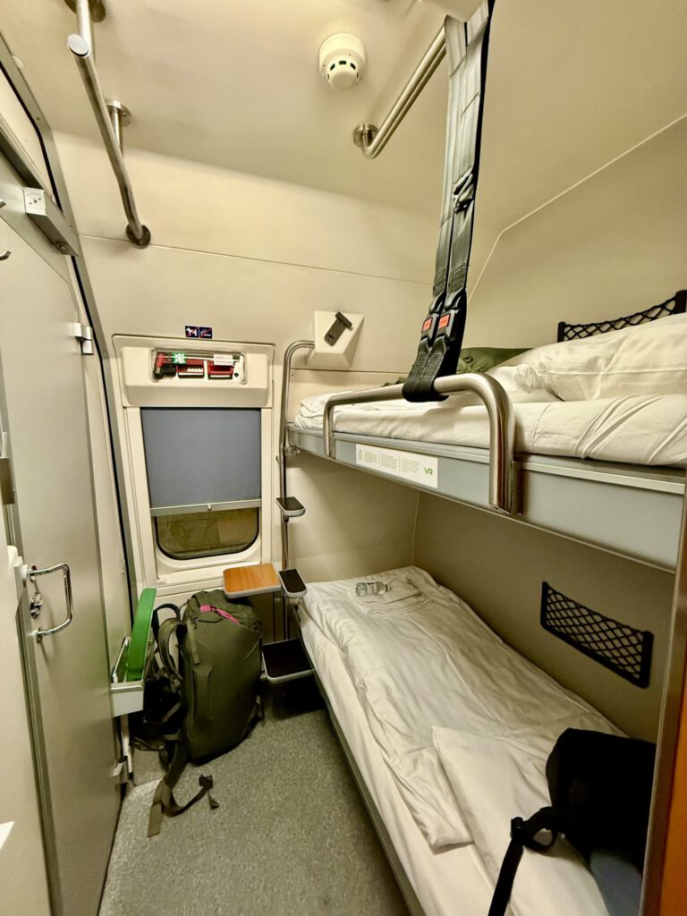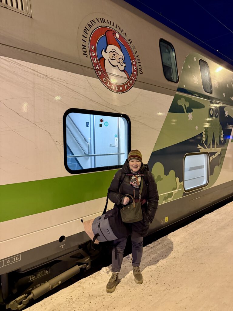 Wir hatten uns als Anreise den Santa Claus Zug gewünscht und sehr frühzeitig für einen schmaler Taler gebucht. Später hörten wir Fabelsummen für unser Abteil/2er mit eigenem Bad….tolle Erfindung.