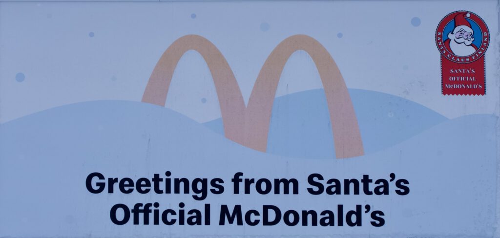 Kommen wir nun zu Santa Claus….tja, Coca Cola hat ganze Arbeit geleistet und der Polarkreis zieht Touris aus aller Welt, vor Allem Chinesen an. Mit SC wird alles assoziiert, nur keine religiösen Inhalte.