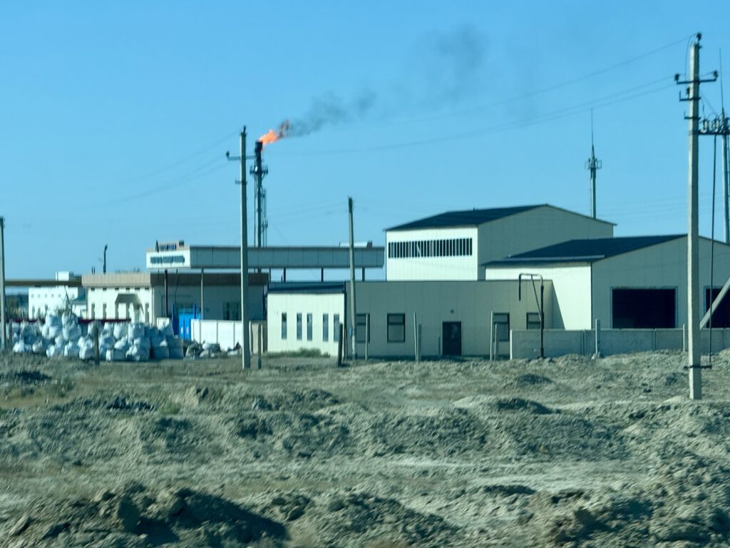 Gas: Aufgrund hoher Gasvorkommen haben sich nicht nur Abbauanlagen, sondern auch richtige Dörfer im Aralsee angesiedelt. 70% aller Autos fahren mit Metan. Beim Betanken dieser Autos dürfen die Beifahrer nicht beim PKW verbleiben,
