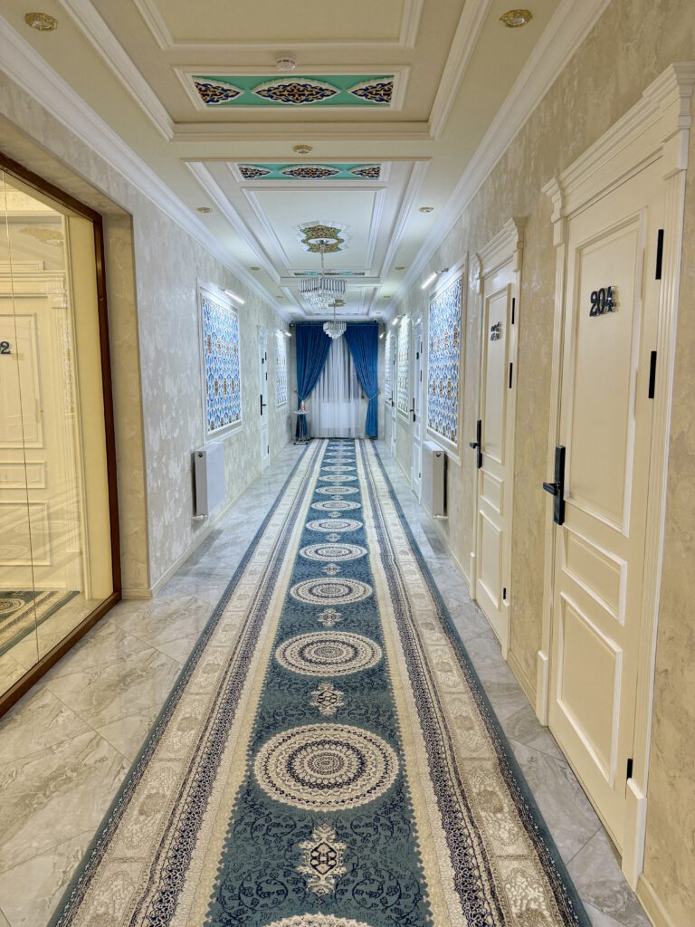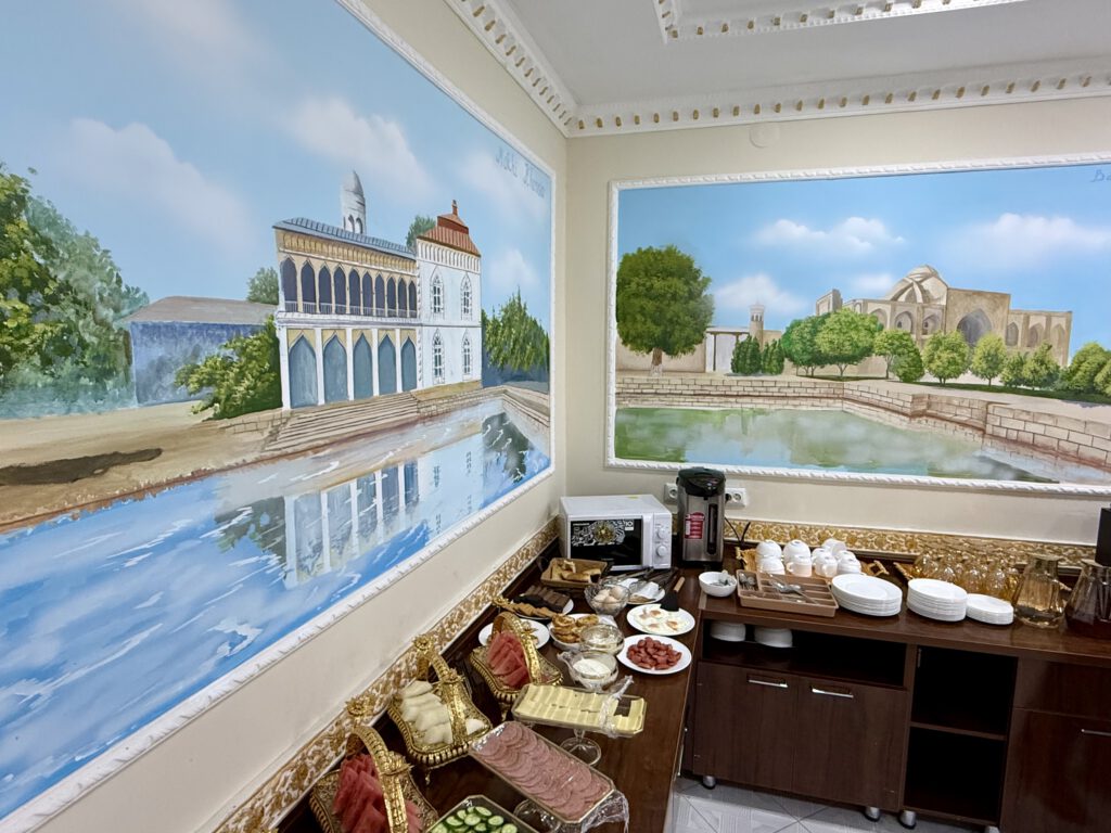 Samarkand: Diplomat Premium, neues Haus, schön dekoriert, wenn auch orientalisch plüschig. Bestes Frühstück und Wahnsinnslage, 250m vom Registan entfernt.