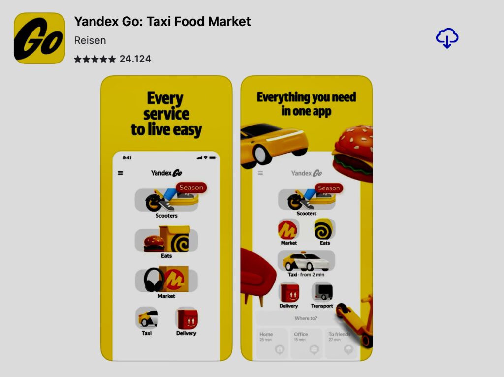 Yandex: Die russische Uber App ist unverzichtbar für günstige Fahrten innerhalb einer Stadt.