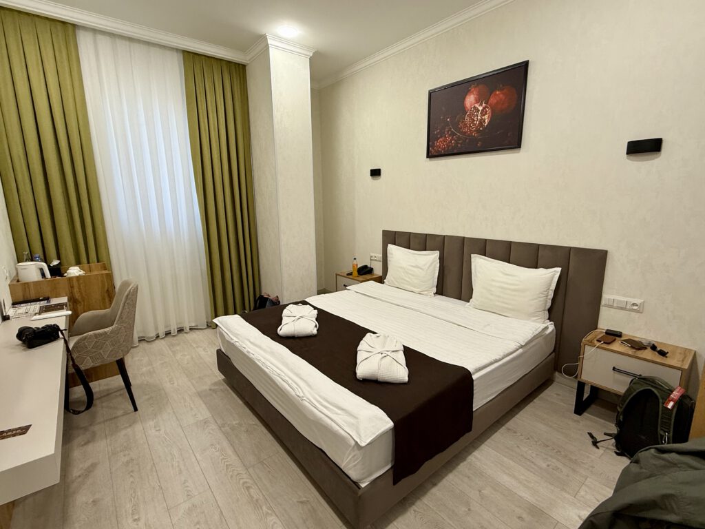 Die Ausstattung war gut, manchmal mit Kühlschrank, immer mit Fön. Kostenpunkt zw. 35-50€ pro Nacht pro Zimmer. Achtung, Luxusklasse ist noch rar, Häuser wie Mercure, Hilton etc. lagen immer ungünstig, selten in Laufdistanz zu den Sehenswürdigkeiten.