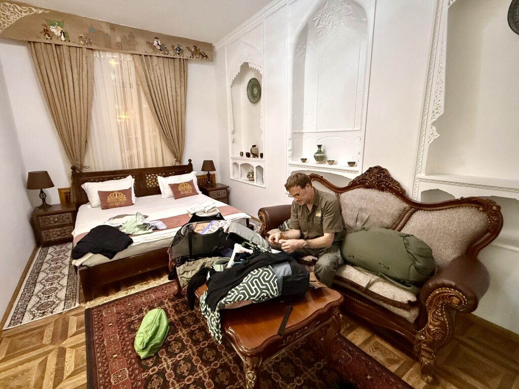 Buchara: Gemütlich, chaotisch und sehr liebenswert….bis auf die Hotelmafia, die uns 3x aus dem gebuchten Haus hinauskomplimentiert hat. Ein schlimmes Gebahren, woran vermutlich booking.com einen großen Anteil hat. Mein Tipp: Hotel über booking aussuchen, Kontakt aufnehmen, eigenständig buchen. Wir hatten das Pech, das Bienale in der Stadt war und wir keine so große Auswahl mehr hatten….aus der Erstbuchung wurde eine Zweitbuchung, Drittbuchung. Ja nicht mal für eine Nacht kamen wir in unsere Transitlösung.