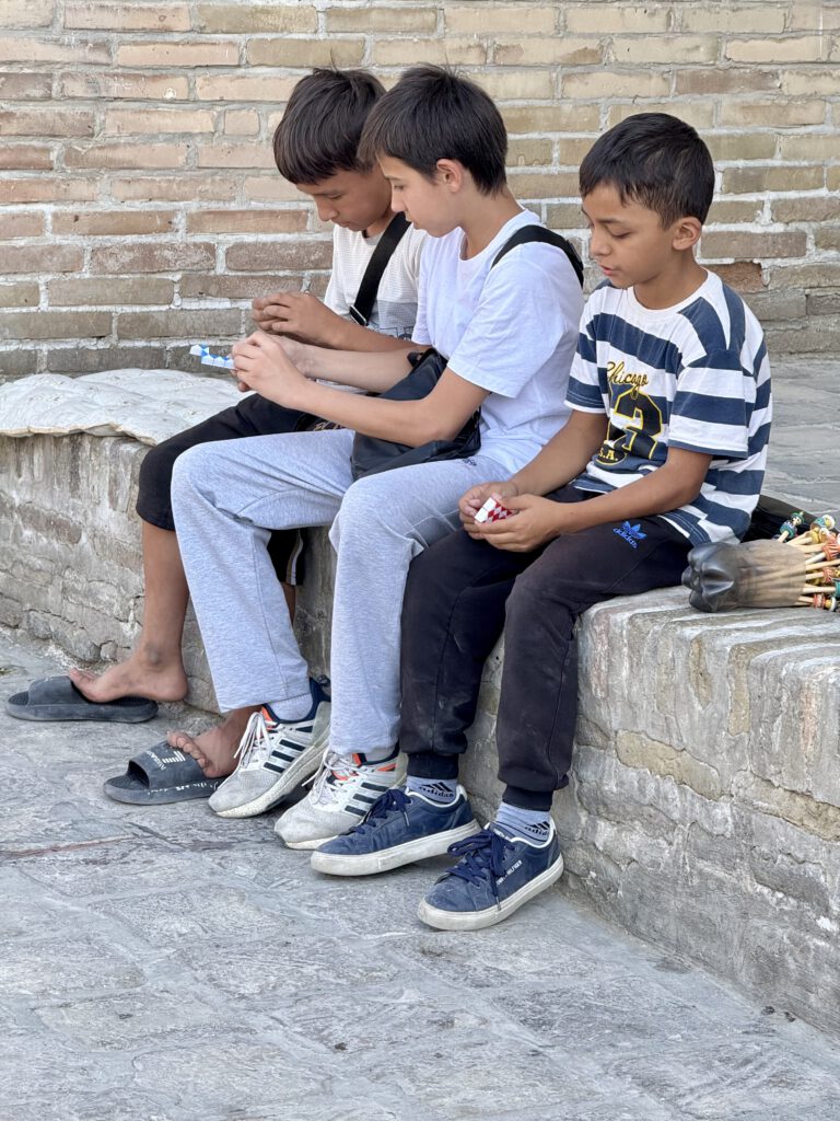 Jugend: Usbekistan ist jung, Großfamilie ist immer noch „in“. Im Vergleich zu unserer überalterten Gesellschaft sind die vielen Kinder, Jugendliche und junge Erwachsene auffallend. Noch auffallender war das gute Benehmen, egal ob Junge oder Mädchen.