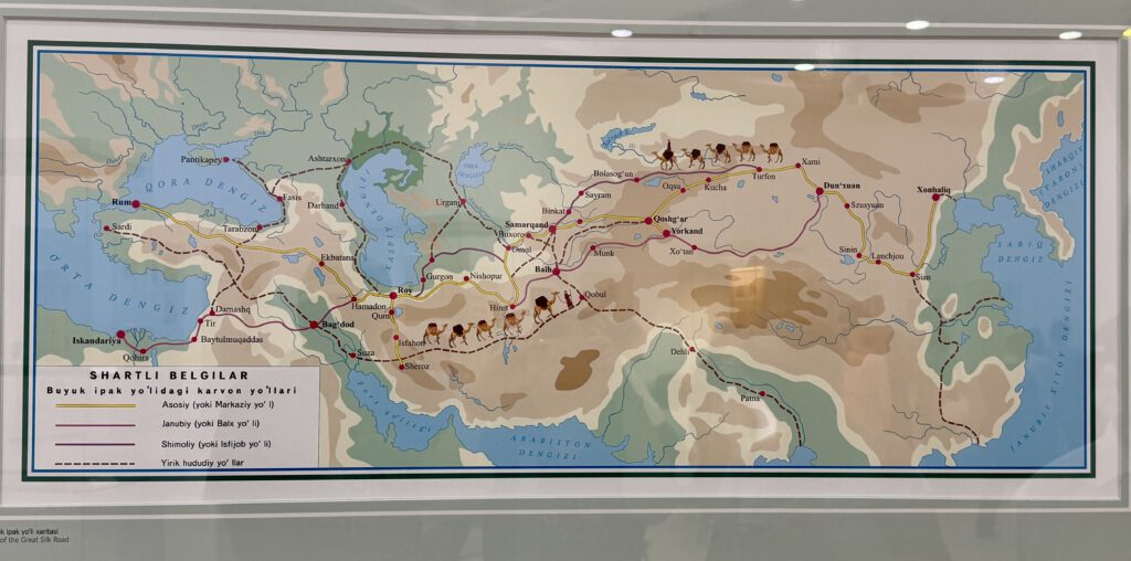 Seidenstraße: Man spürt das Erbe der Seidenstraße überall, ob das Essen aus China und dem Balkan, die Gewürze, die Stoffe,  Yurten aus der Mongolei, die Architektur. Usbekistan ist übrigens aauch Teil der neuen Seidenstraße