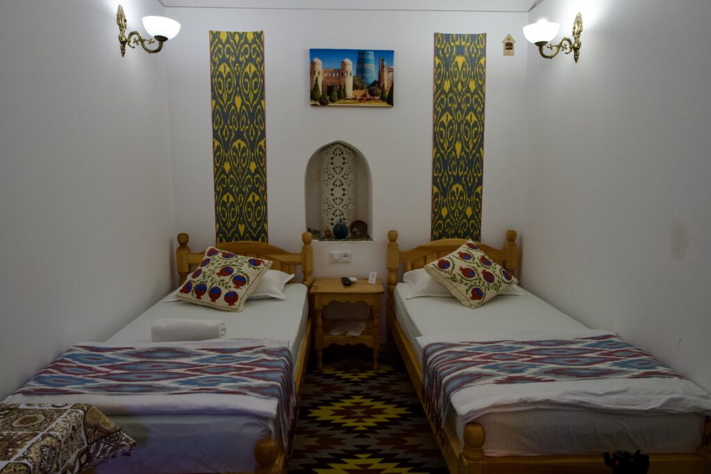 Khiva: Mdrash Povlon- Qori Medrese: Schöne Zimmer, gute Bäder, schönes Frühstück und eine super Lage. Die alte Medrese mit eigenem Minarett überzeugt und war auch ein Tip meines Reiseführers….jederzeit wieder.